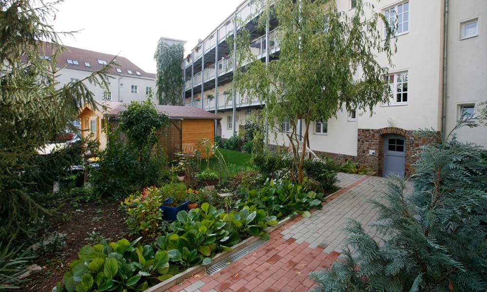 Die Häuser der Georg-Schumann-Str.306-312 wurden 2002/2003 altersgerecht, schwellenlos umgebaut und saniert. In den Wohnungen haben nicht nur ältere Menschen ein ansprechendes Zuhause gefunden. Hier leben „ Jung“ und „ Alt“ harmonisch nebeneinander in einem Hausensemble.